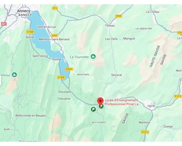 Notre camp bénéficie d’un hébergement idéalement situé au sein de l’internat de Faverges, au chemin des Prés de l’Enfer. Le site se trouve dans un cadre calme et verdoyant, parfait pour offrir aux jeunes un environnement serein et propice au repos entre deux séances d’entraînement. L’internat est facilement accessible en voiture, et un parking à proximité permet un dépôt et une récupération des participants sans stress.